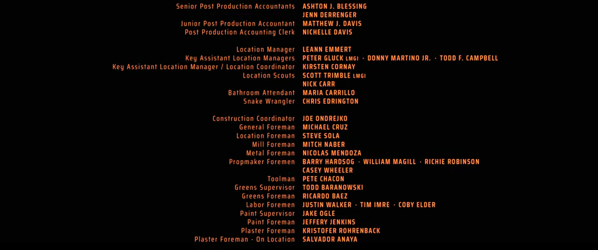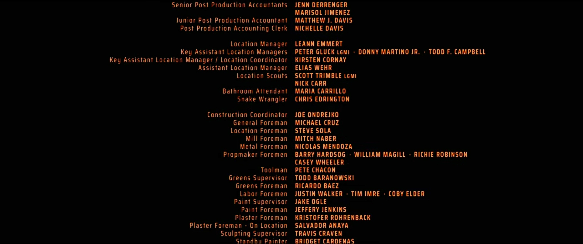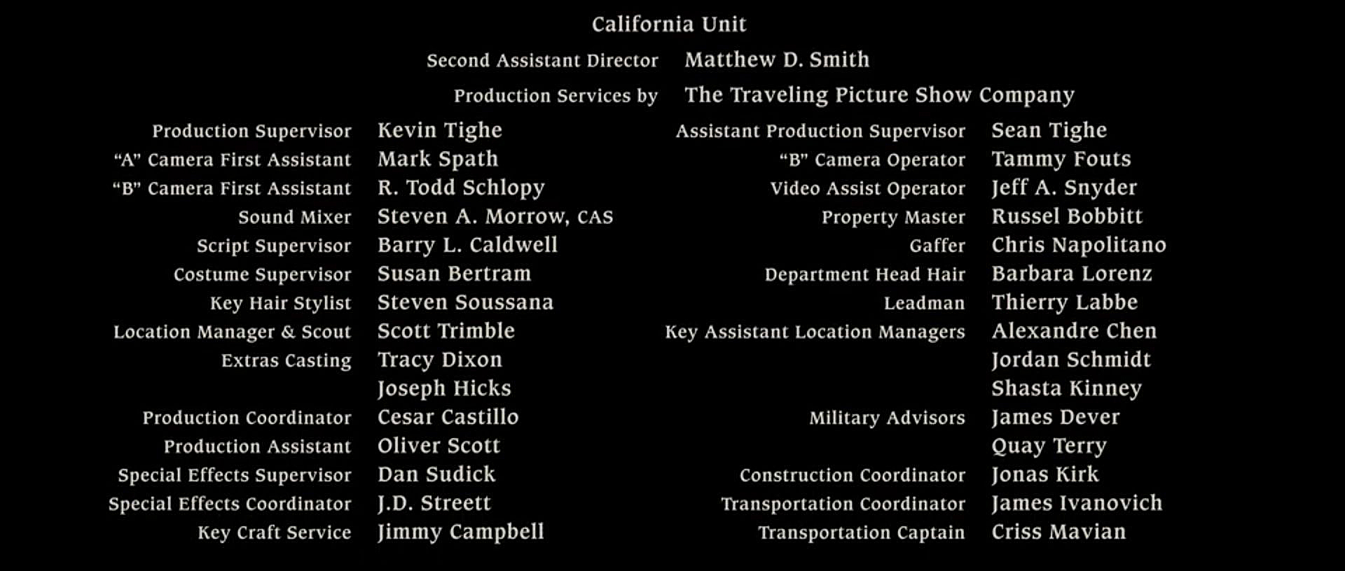 The on-screen credits are often only half or less of the actual number of people who worked on that film. For example, I worked over six months on Sweet November (2001), but my name did not appear on screen. Thus, my résumé is a better reflection of what I have actually done. This list is for personal trivia and historical preservation only.