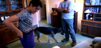 In August 2003, because of my own appearance in the craigslist movie, Sadie also appeared in the film as herself while prospective tenants and their dogs visited my house in Northern California. The film included an interesting shot where Sadie was being playfully chased around the small living room by one of those dogs. This scene appeared briefly in one of the film's trailers.