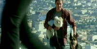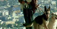 In December 2004, Sadie made an appearance in the movie Undiscovered (known at the time as Wannabe), starring Ashlee Simpson, Pell James, and Steven Strait. The scene above, which appeared at the beginning of the movie, was filmed, coincidentally enough, at Sadie's very favorite Los Angeles place: Runyon Canyon in the Hollywood Hills. Yes, she even knows what "Runyon Canyon" means and can smell the place from many blocks away. She was in this scene with her two of her doggie friends, Kuma and Preston.