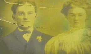 (The first picture is a digitization of the original picture of Walter Graham SUGGS Sr. and Sarah Edna McDONALD on their wedding day in 1906. The second is of a 1994 restoration.)