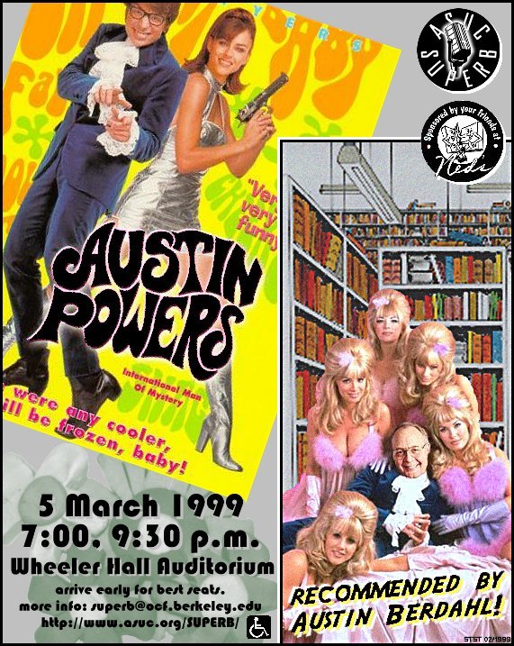 Austin Powers and U.C. Berkeley's Chancellor Robert Berdahl, altered Feb 1999 for an unused ASUC SUPERB advertisement (Berdahl didn't have sense of humor enough to allow our posting it) [enlarge]. |