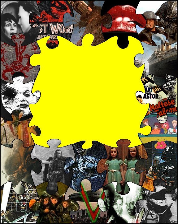 Miscellaneous Movie Characters in a Jigsaw Collage for use as a dorm doortag, created Aug 1998, [enlarge]. |