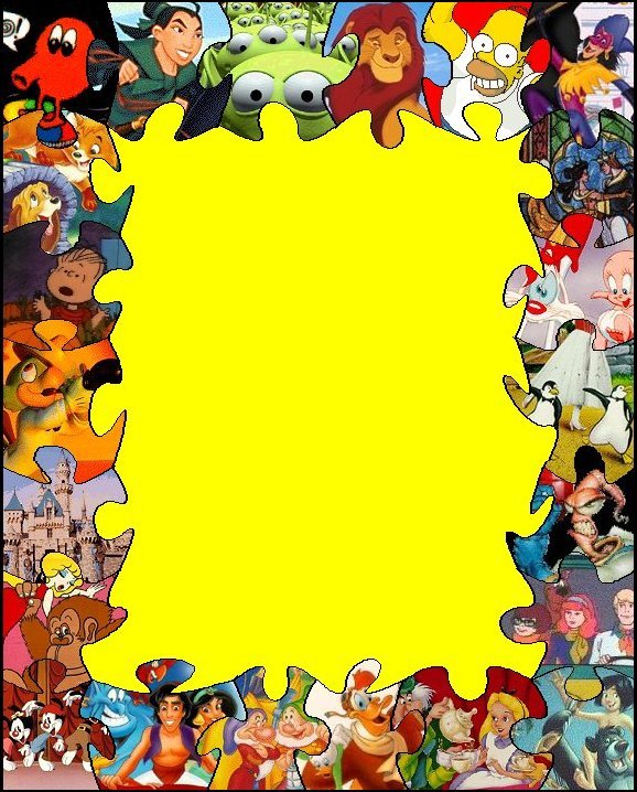 Misc. Cartoon Characters in a Jigsaw Collage for use as a dorm in-out board, created Aug 1998, [enlarge]. |