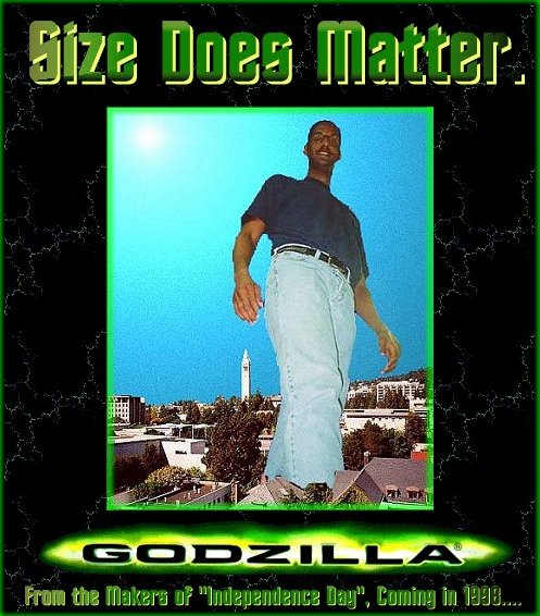 Krishna Henry as the Godzilla of Berkeley, altered Dec 1997, [enlarge]. |