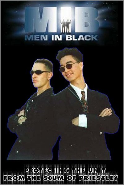 Reuben Politi (Tommy Lee Jones) and Roger Tsai (Will Smith) as the Men in Black, altered Dec 1997, [enlarge]. |
