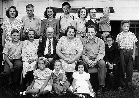 Scott Trimble (center of the top row) with his ancestors at the 1947 Family Reunion, altered Jul 1997, [enlarge]. |