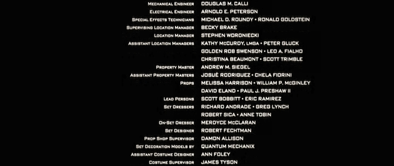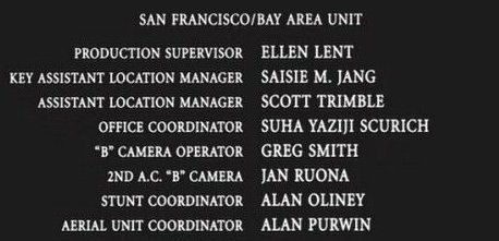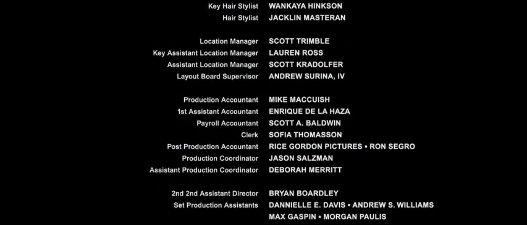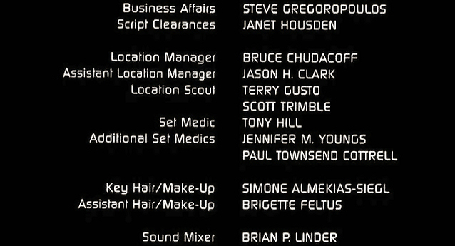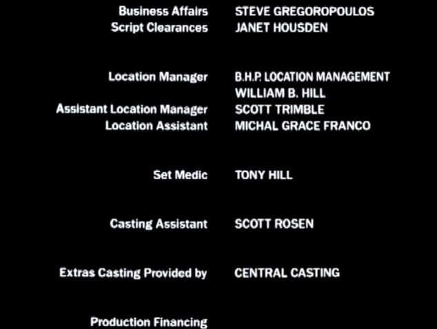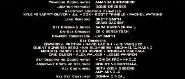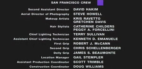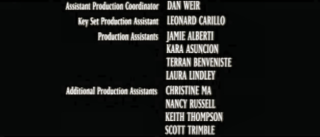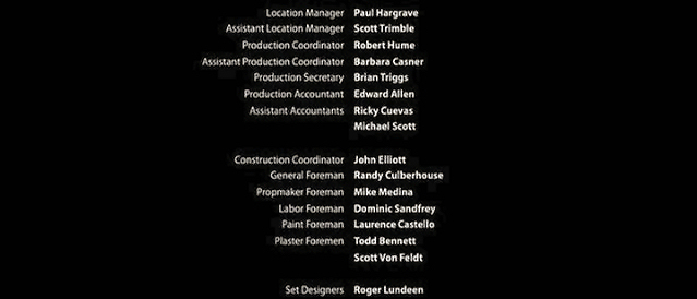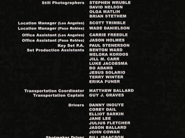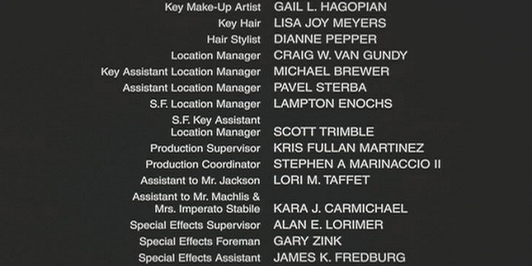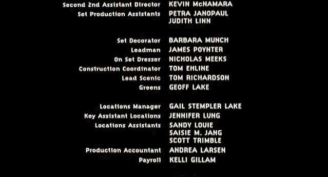 The on-screen credits are often only half or less of the actual number of people who worked on that film. For example, I worked over six months on Sweet November (2001), but my name did not appear on screen. Thus, my résumé is a better reflection of what I have actually done. This list is for personal trivia and historical preservation only.
