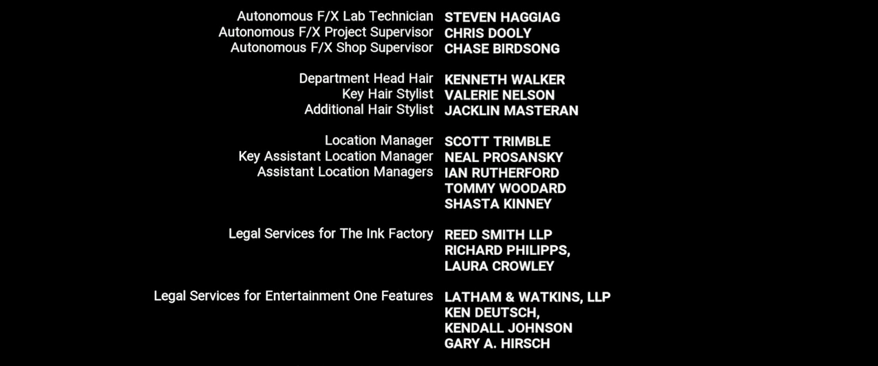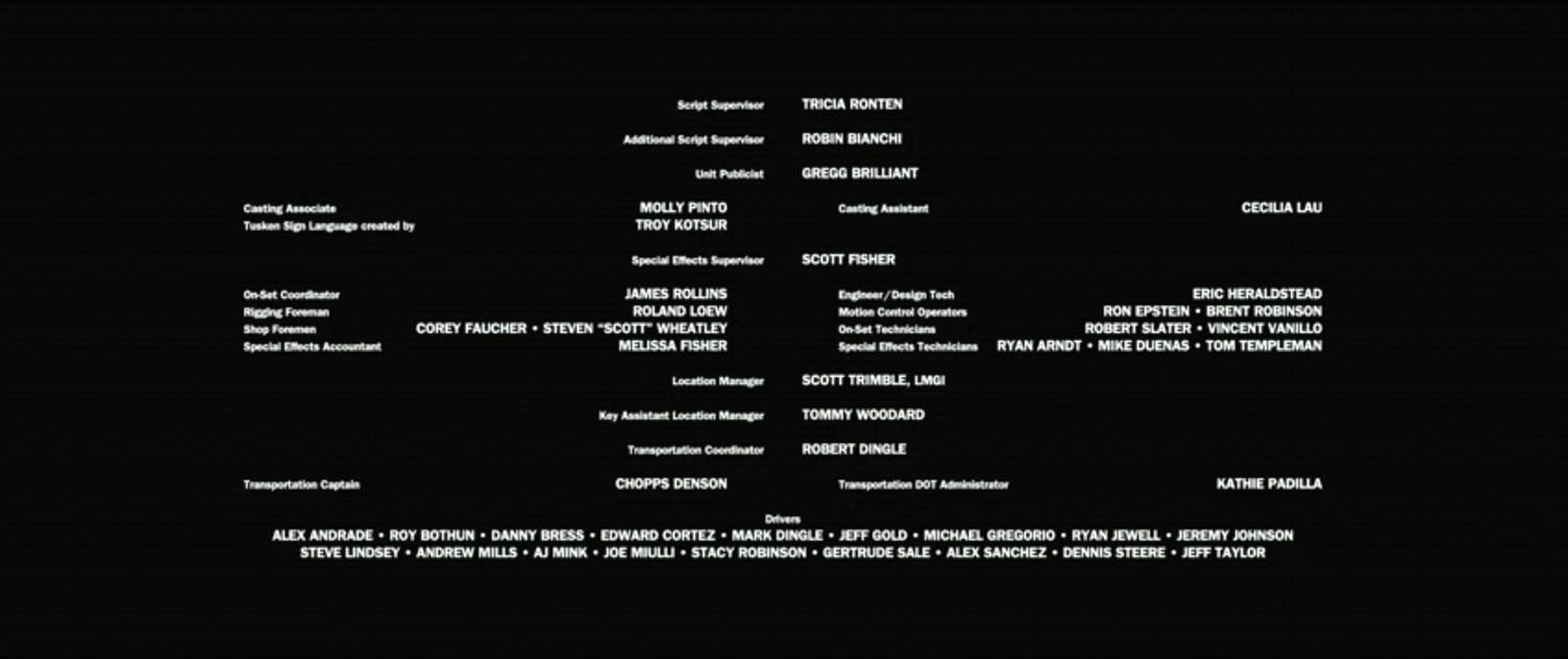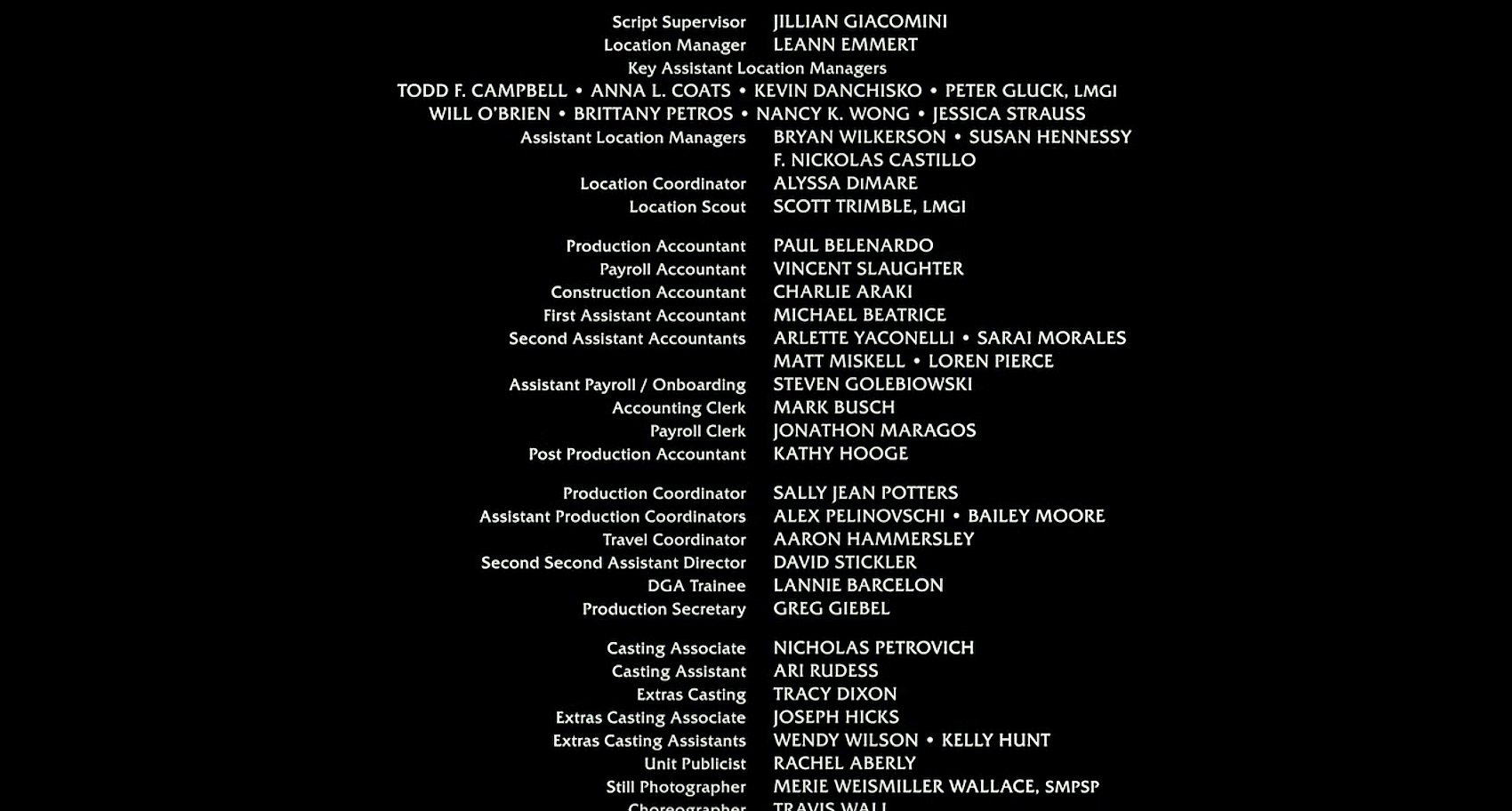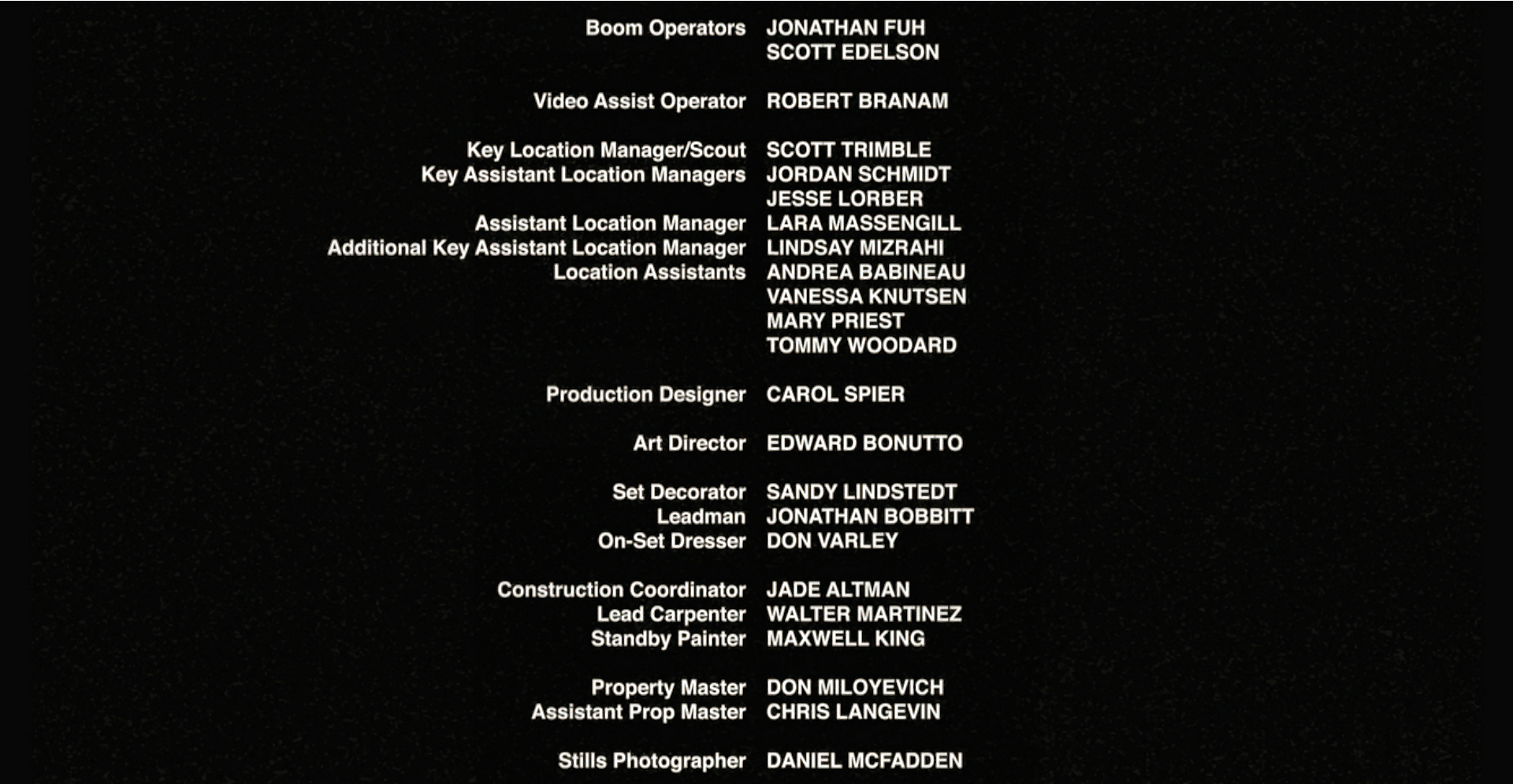 The on-screen credits are often only half or less of the actual number of people who worked on that film. For example, I worked over six months on Sweet November (2001), but my name did not appear on screen. Thus, my résumé is a better reflection of what I have actually done. This list is for personal trivia and historical preservation only.