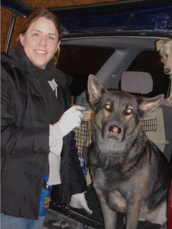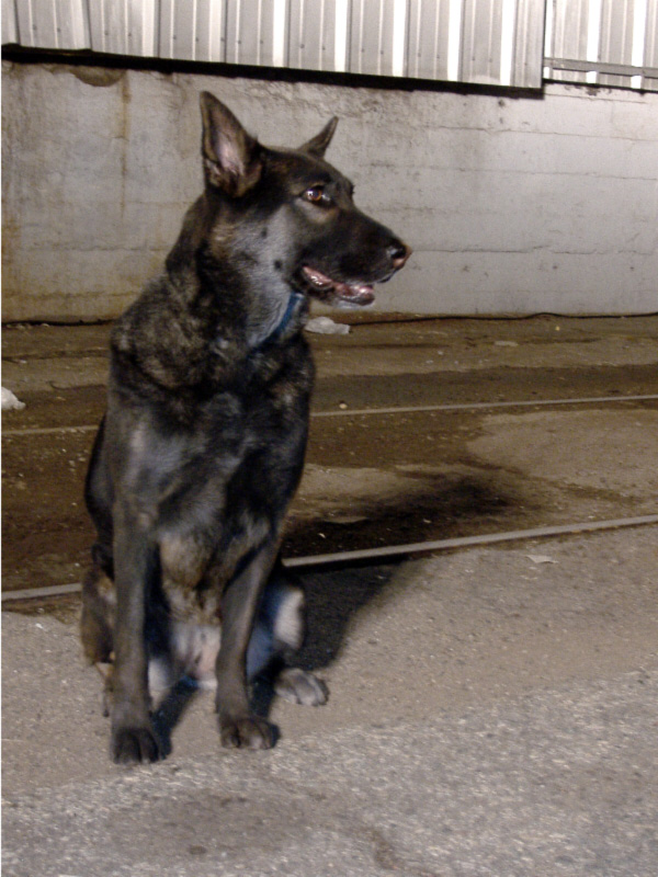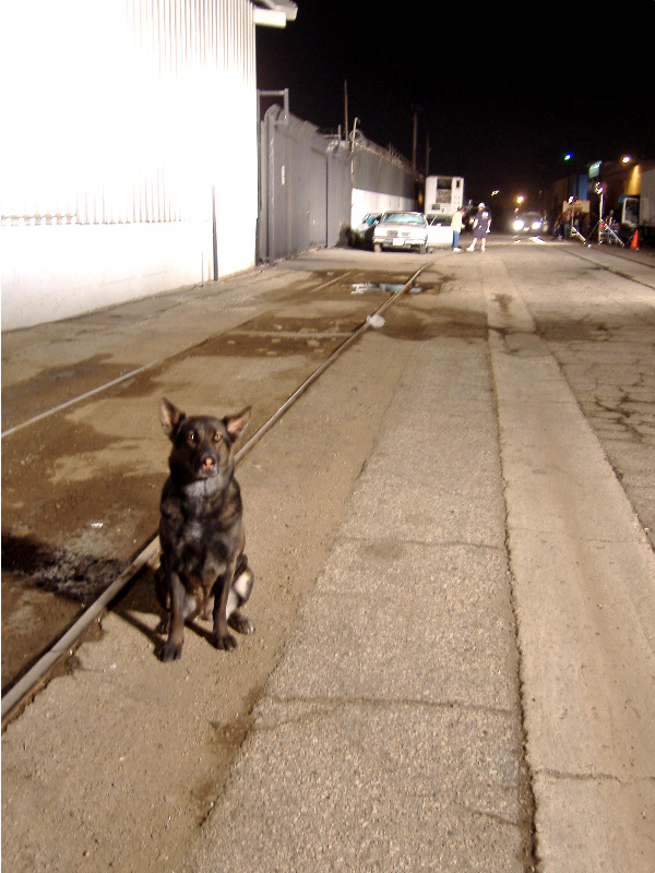 In February 2007, Sadie worked in a short student film called Fold (formerly known as Maki), produced by Sam Raimi's production company, Ghost House Pictures. She was temporarily painted all black, she dies in her scene (she's barking inside a pick-up truck that gets blown up), and she belongs to a character called Suicide Man, portrayed by the great Clint Howard. The scene was filmed southeast of Downtown Los Angeles, and that's her trainer, Sarah Clifford, in the fourth picture above.
