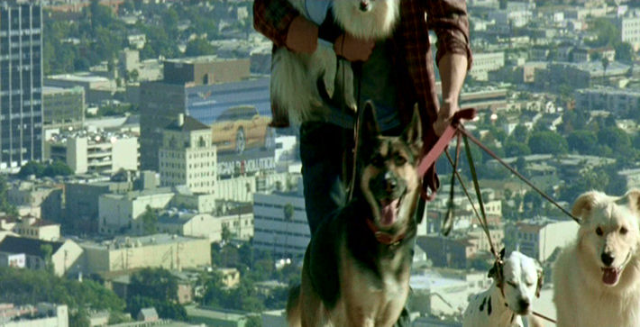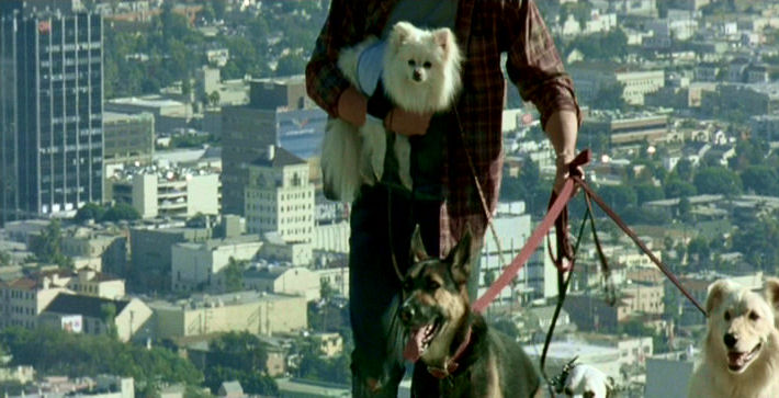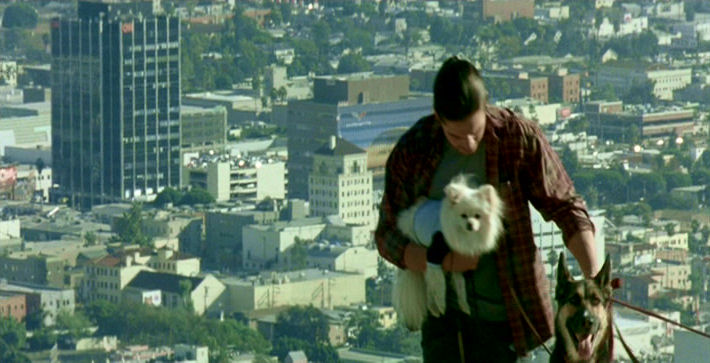 In December 2004, Sadie made an appearance in the movie Undiscovered (known at the time as Wannabe), starring Ashlee Simpson, Pell James, and Steven Strait. The scene above, which appeared at the beginning of the movie, was filmed, coincidentally enough, at Sadie's very favorite Los Angeles place: Runyon Canyon in the Hollywood Hills. Yes, she even knows what "Runyon Canyon" means and can smell the place from many blocks away. She was in this scene with her two of her doggie friends, Kuma and Preston.